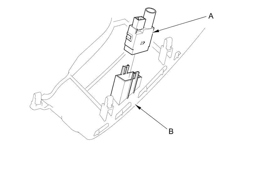 2. Remove the humidity/in-car temperature sensor (A) from the driver's dashboard lower cover (B).