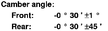 - If the measurement for the rear camber is not within the specification, check for bent or damaged suspension components.