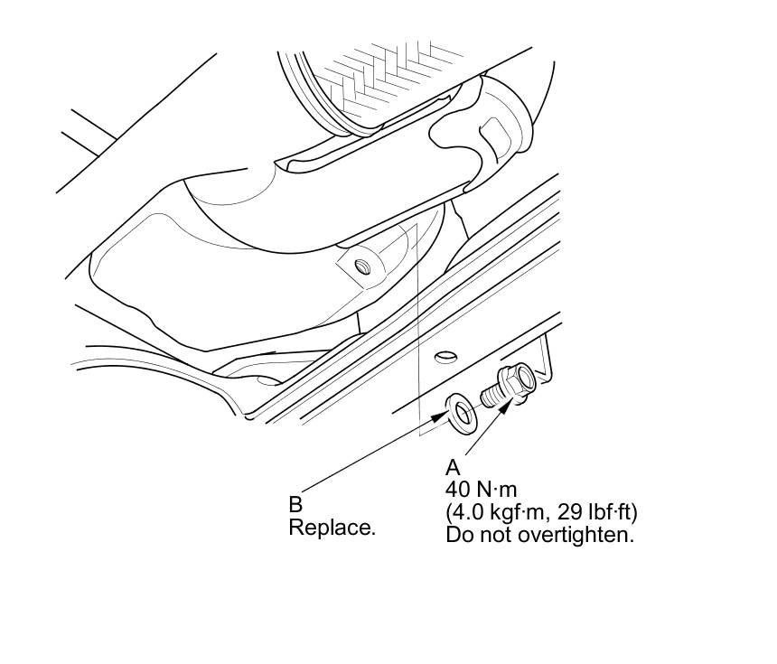 3. Reinstall the drain bolt with a new washer (B) and torque to specification.