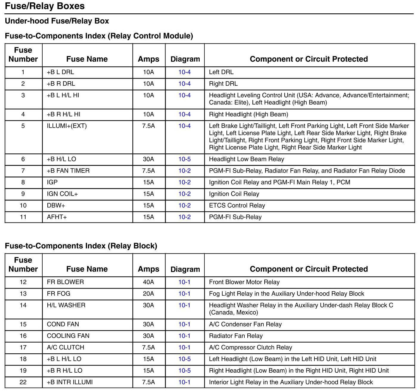 Under-Hood Fuse/Relay Box - Fuse-to-Components Index (Relay Control Module/Relay Block)