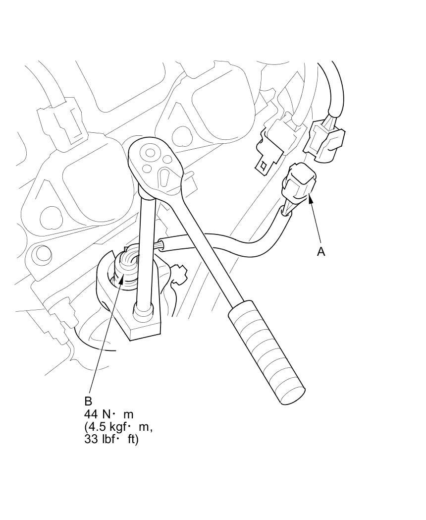 1. Disconnect the rear A/F sensor 6P connector (A), then remove the rear A/F sensor (B).