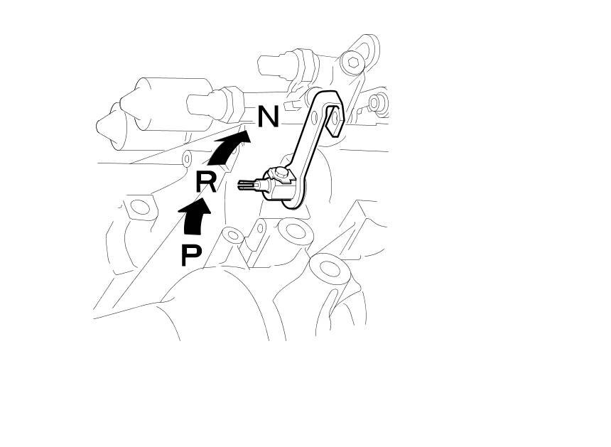 NOTE: Be sure to use a 2.0 mm (0.08 in) feeler gauge blade or equivalent to hold the transmission range switch in the N position.