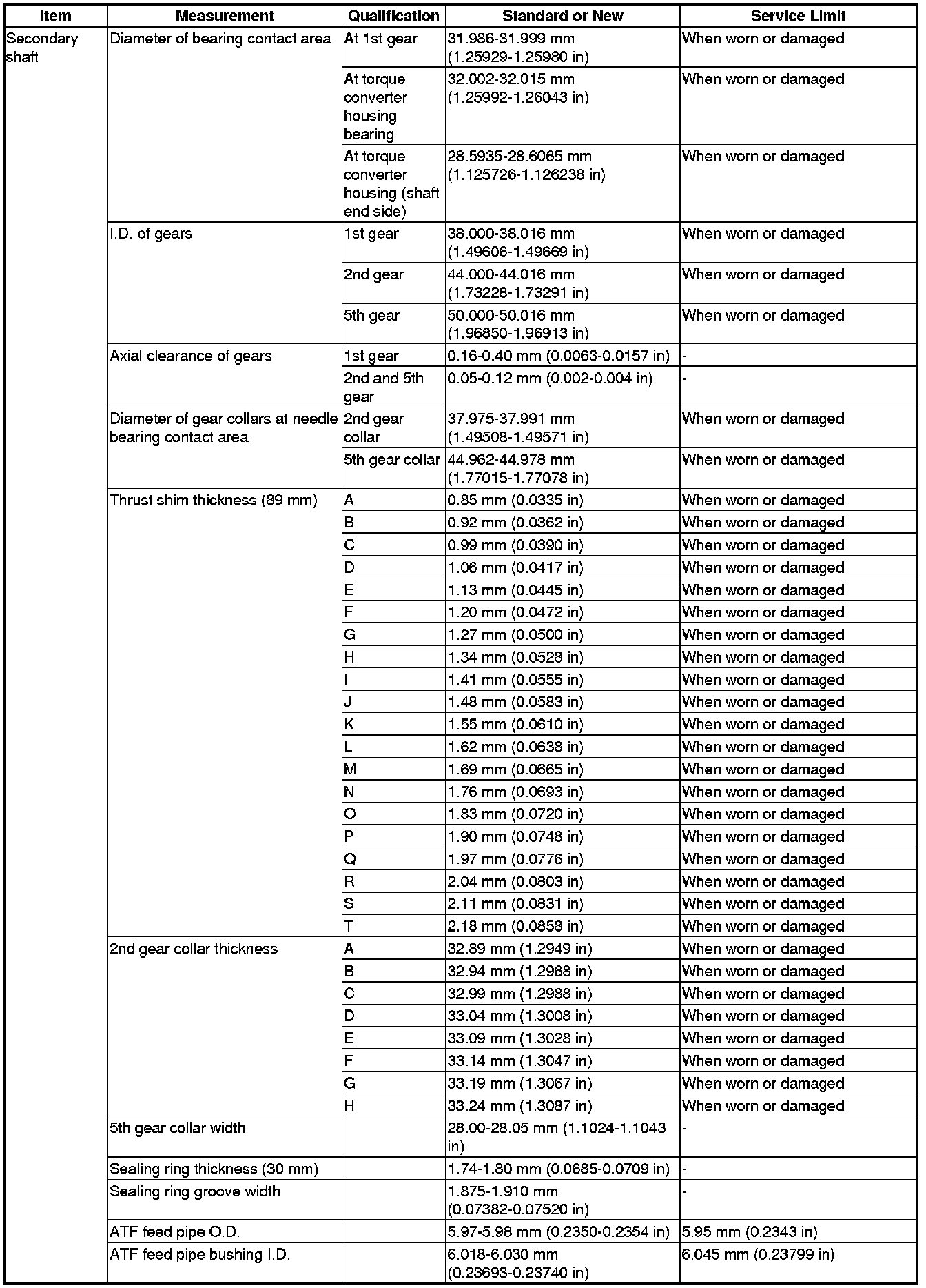 Secondary Shaft Specification(s)
