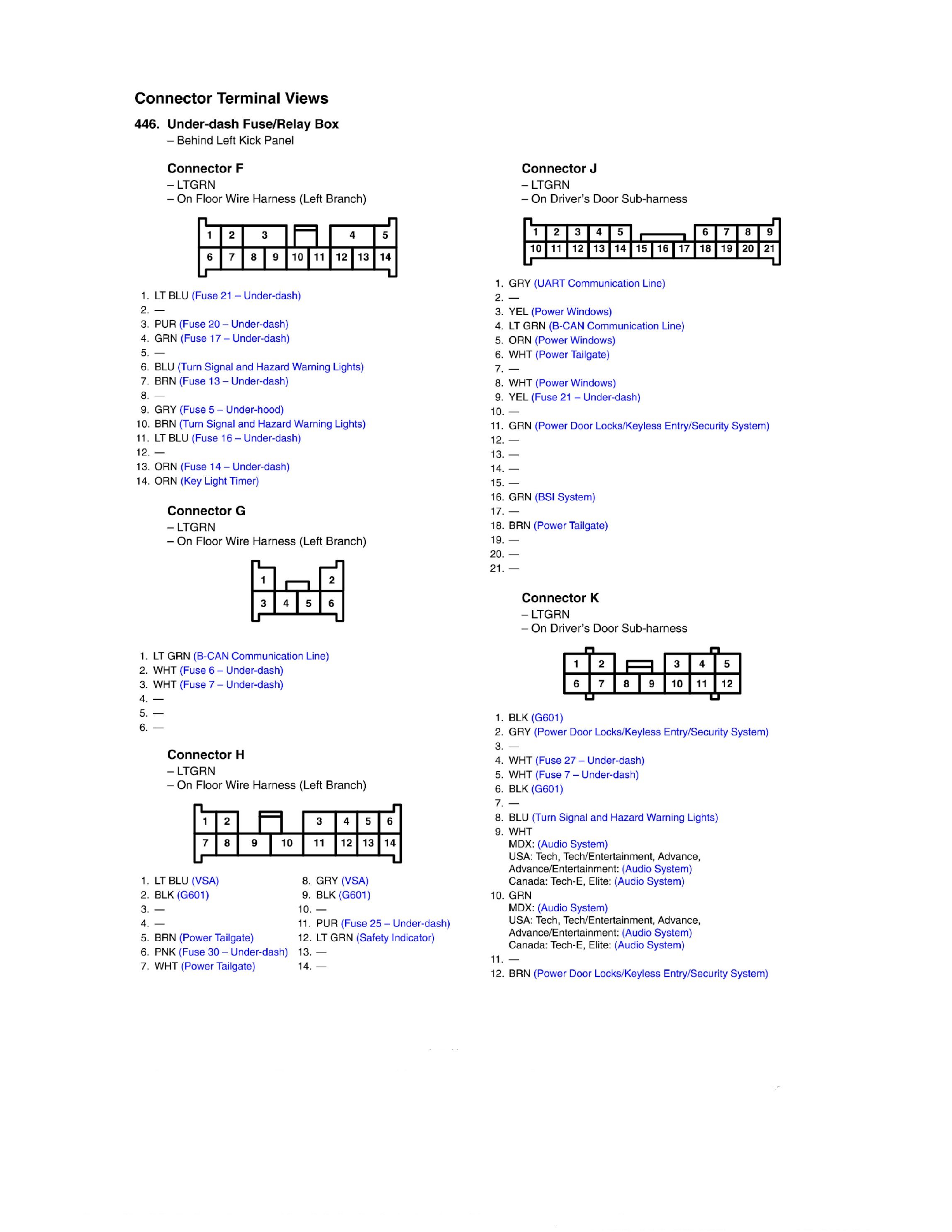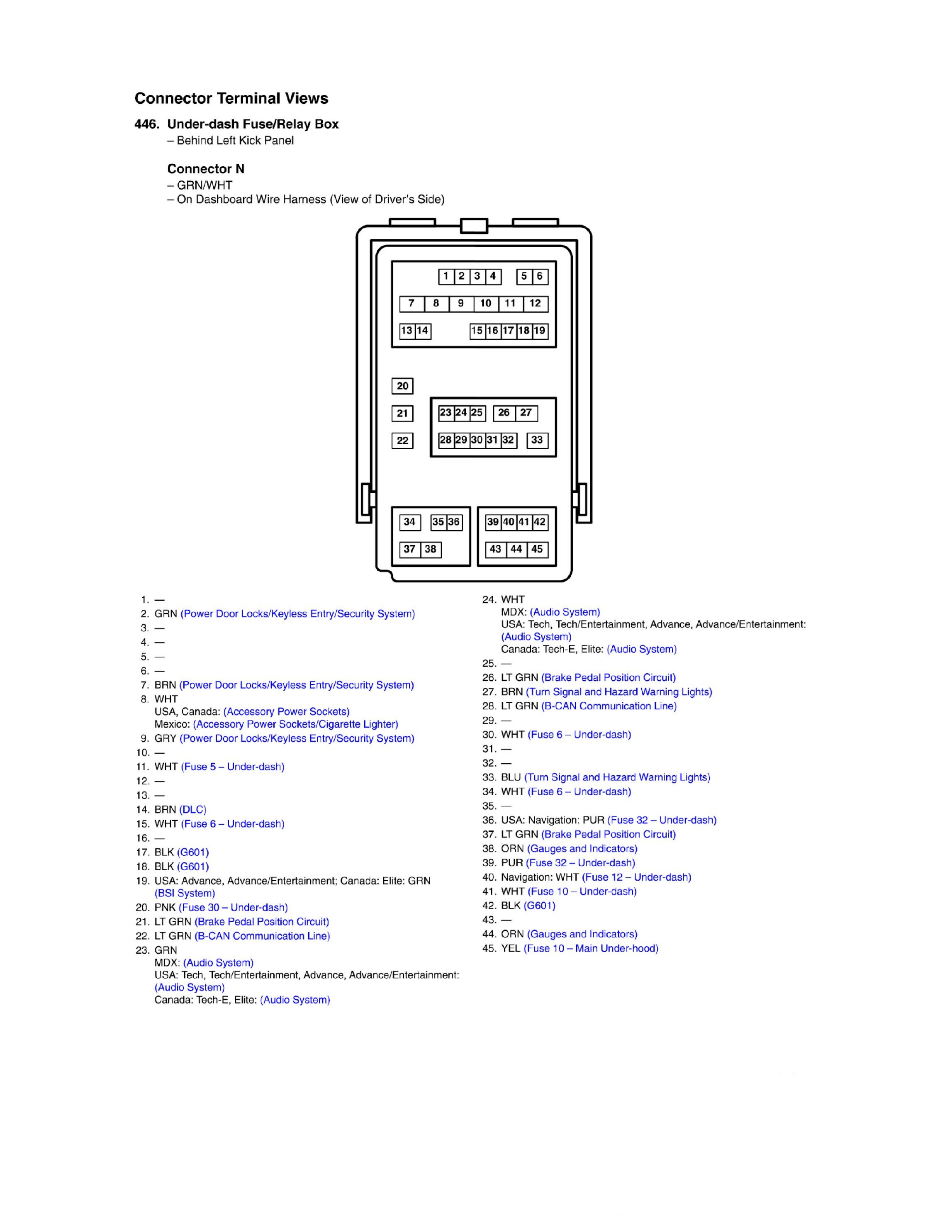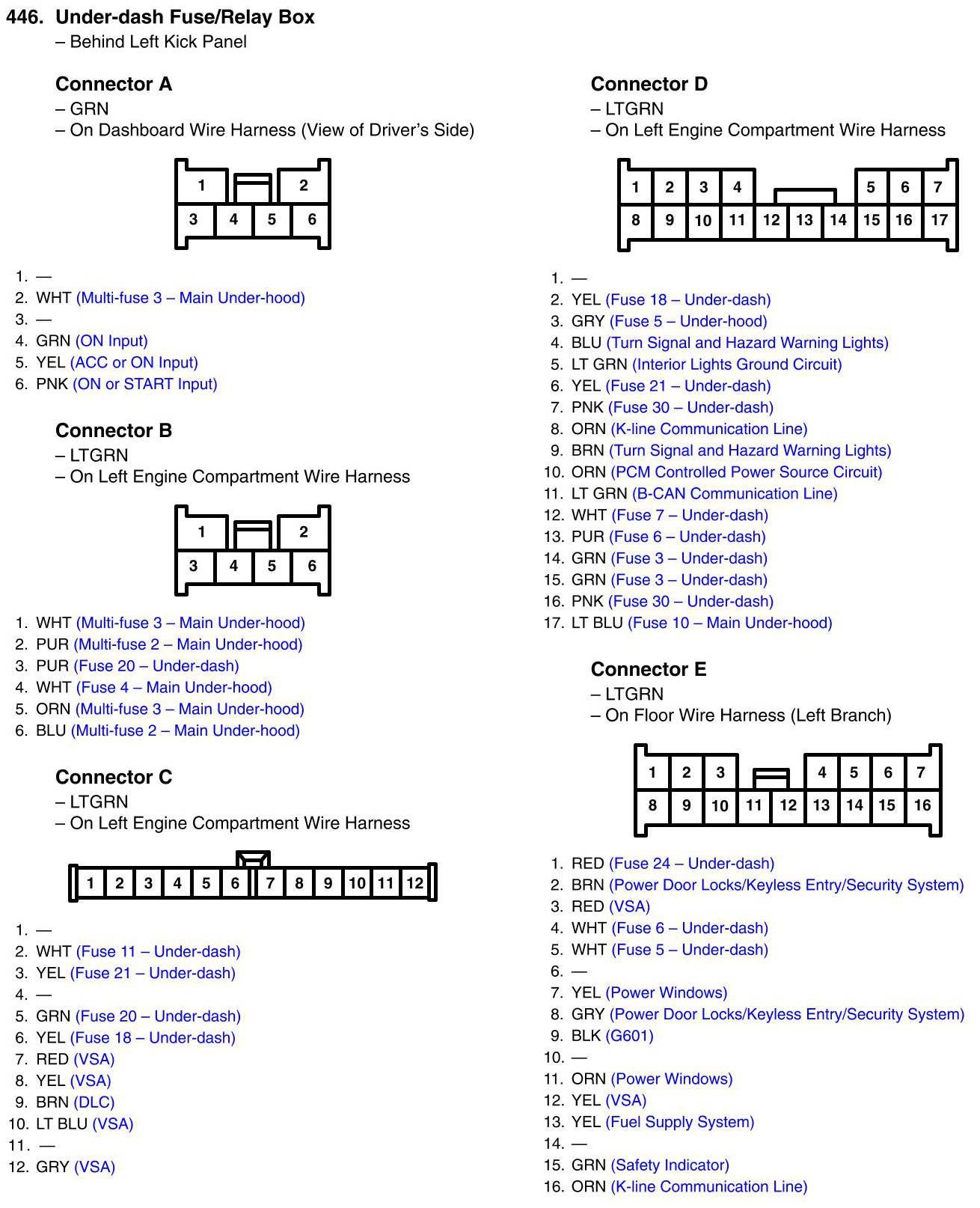 Under-dash Fuse/Relay Box Connector View