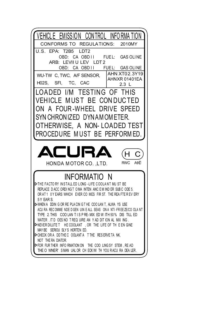 Under-Hood Emission Control Label