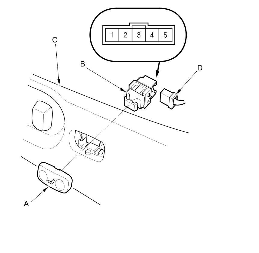 2. Disconnect the 5P connector (D), and remove the switch from cover.