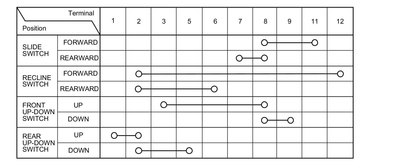 4. Check for continuity between the terminals in each switch position according to the table.