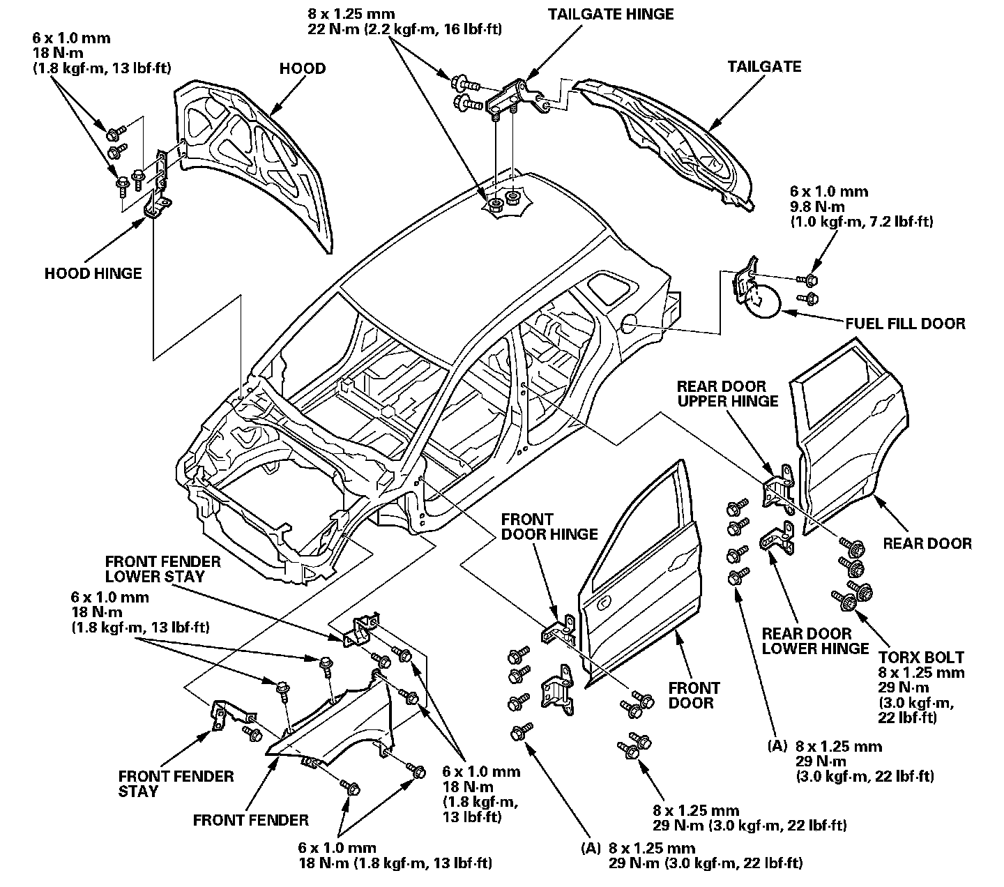- To adjust the alignment of the hood, the doors, and the tailgate.