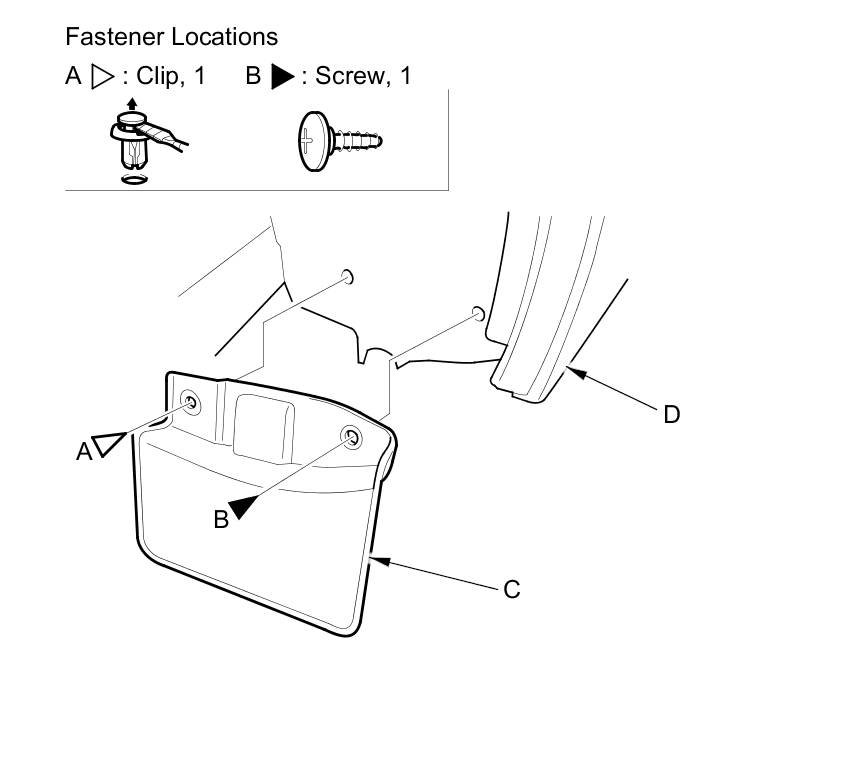 Remove the clip (A) and the screw (B), then remove the rear strake (C). Take care not to scratch the rear