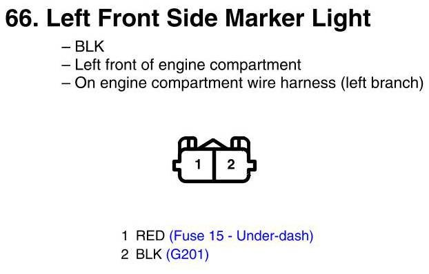 View 66 - Left Front Side Marker Light Connector View