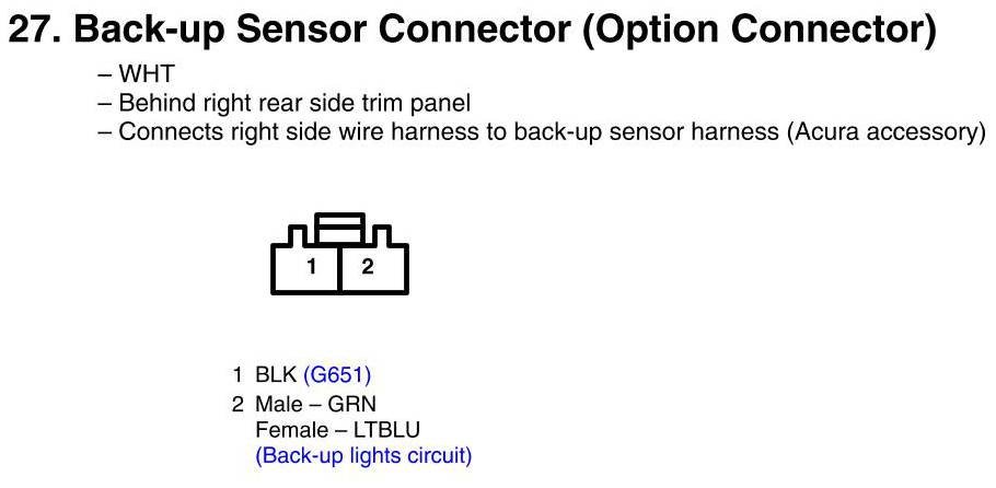 Back-Up Sensor Connector Connector View (Option Connector)