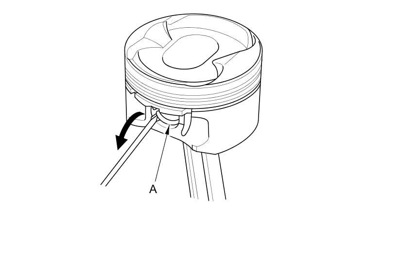 1. Install a piston pin snap ring (A) only on one side.
