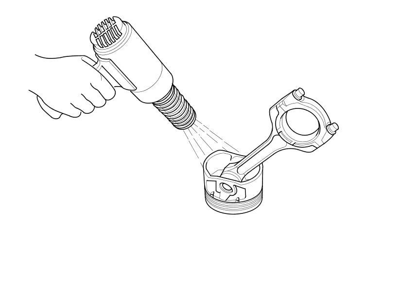 4. Separately heat each piston and connecting rod assembly to about 158 °F (70 °C), then remove the piston pin.