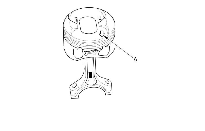 3. Position the piston/ connecting rod assembly with the arrow (A) facing the cam chain side of the engine block.