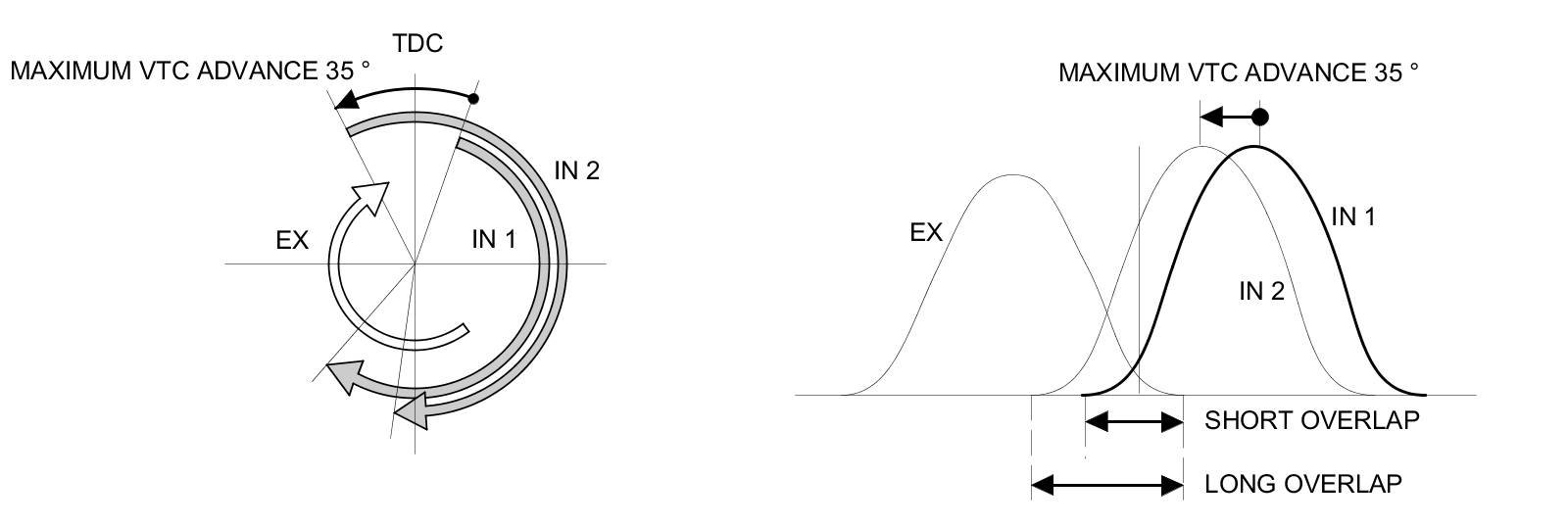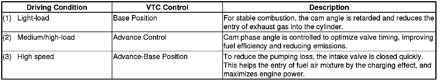 - The VTC system makes continuous intake valve timing changes based on operating conditions.