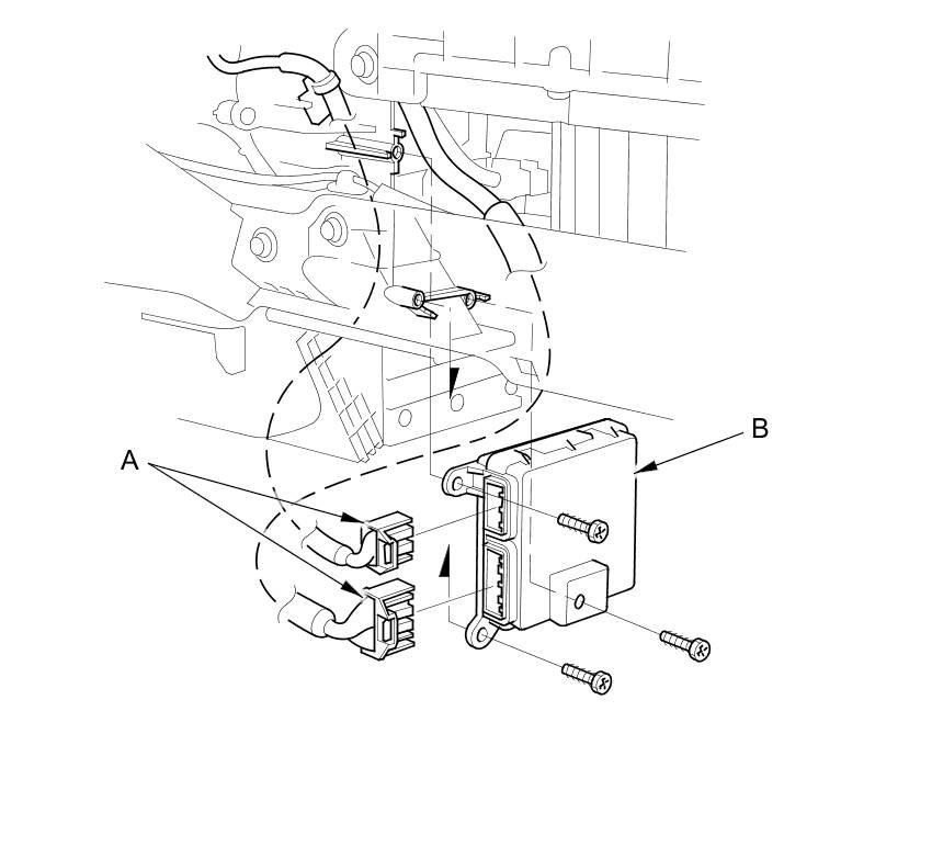 3. Remove the self-tapping screws and the climate control unit (B).