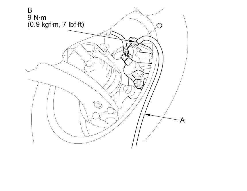 4. Attach a length of clear drain tube (A) to the bleed screw (B), then loosen the bleed screw to allow air to escape from the system. Then tighten the bleed screw securely.