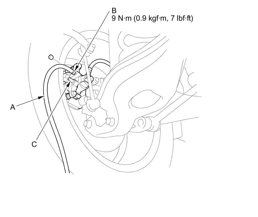 NOTE: Do not loosen the special bolt (C) on the rear caliper.