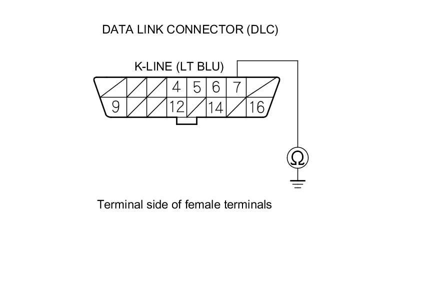 19. Check for continuity between DLC terminal No. 7 and body ground.