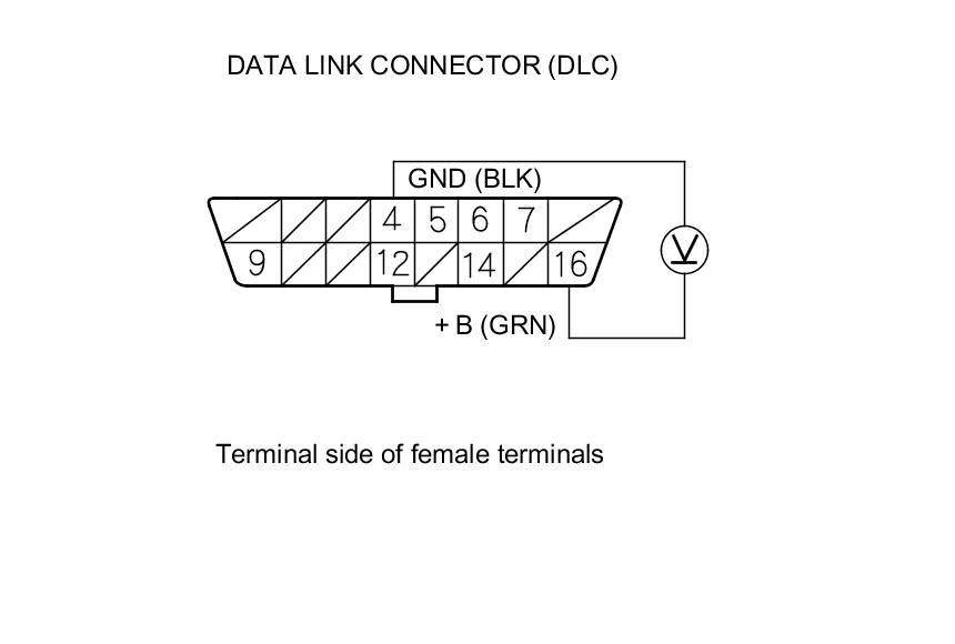 26. Measure the voltage between DLC terminal No. 16 and body ground.