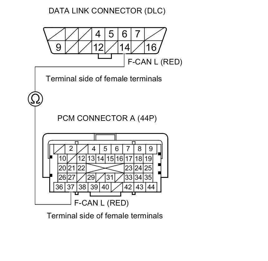 33. Check for continuity between PCM connector terminal A37 and DLC terminal No. 14.