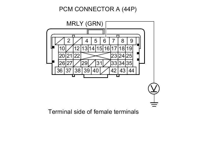 55. Measure the voltage between PCM connector terminal A6 and body ground.