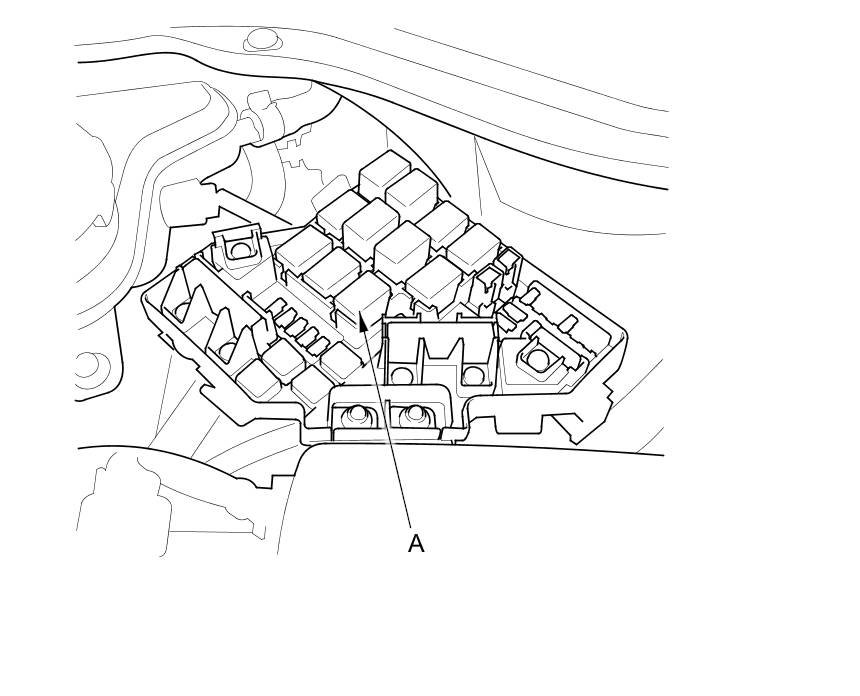 49. Remove the driver's dashboard undercover Driver's Dashboard Undercover Removal / Installation, then remove PGM-FI main relay 2 (A) from the under-dash fuse/ relay box.
