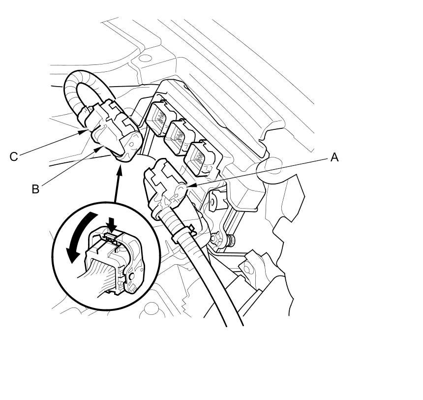 2. Disconnect PCM connectors A, B and C.