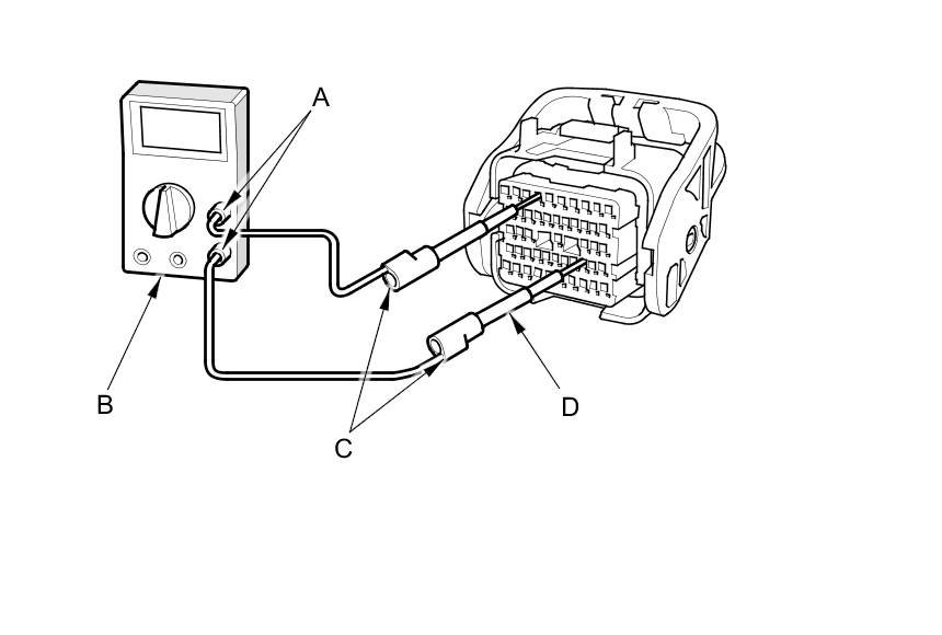 - To prevent damage to the connector terminals, do not insert test equipment probes, paper clips, or other substitutes as they can damage the terminals. Damaged terminals cause a poor connection and an incorrect measurement.