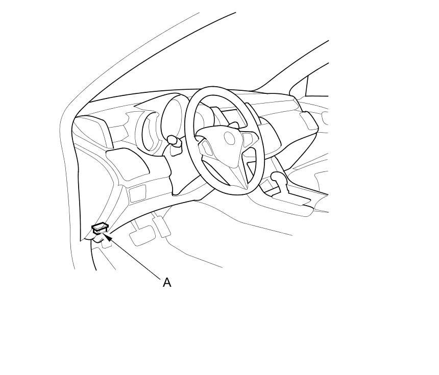 When the Honda Diagnostic System (HDS) is connected to the data link connector (DLC) (A) located under the left end of the dash, it will indicate the diagnostic trouble code (DTC) when the ignition switch is turned to ON (II) and the appropriate menu is selected.