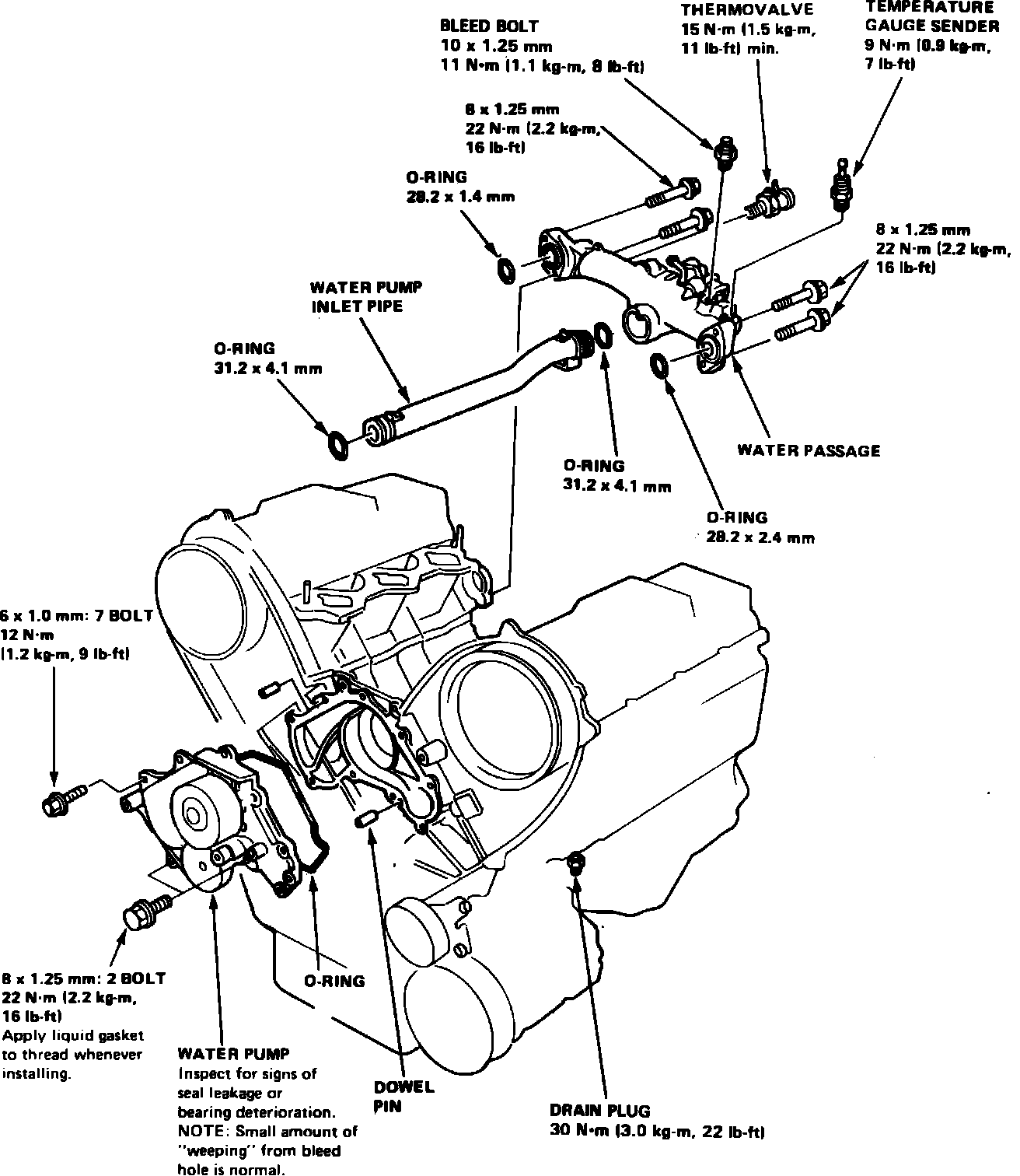 Fig. 45 Water pump replacement. Legend: