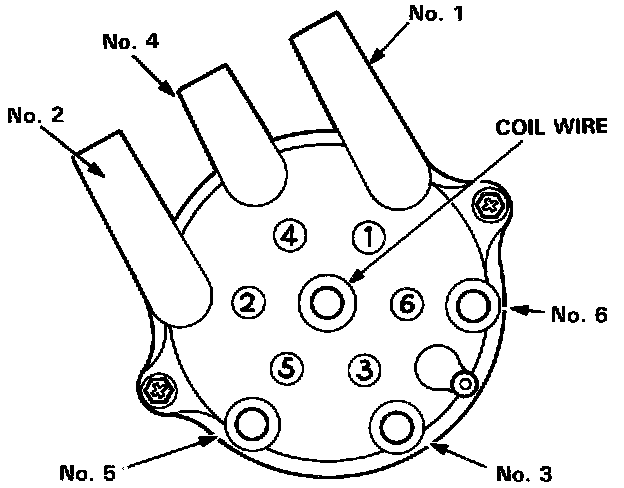 2. Disconnect the spark plug wires and coil wire from the distributor cap.