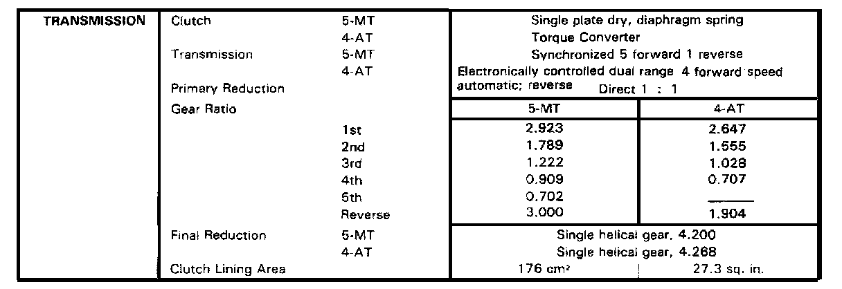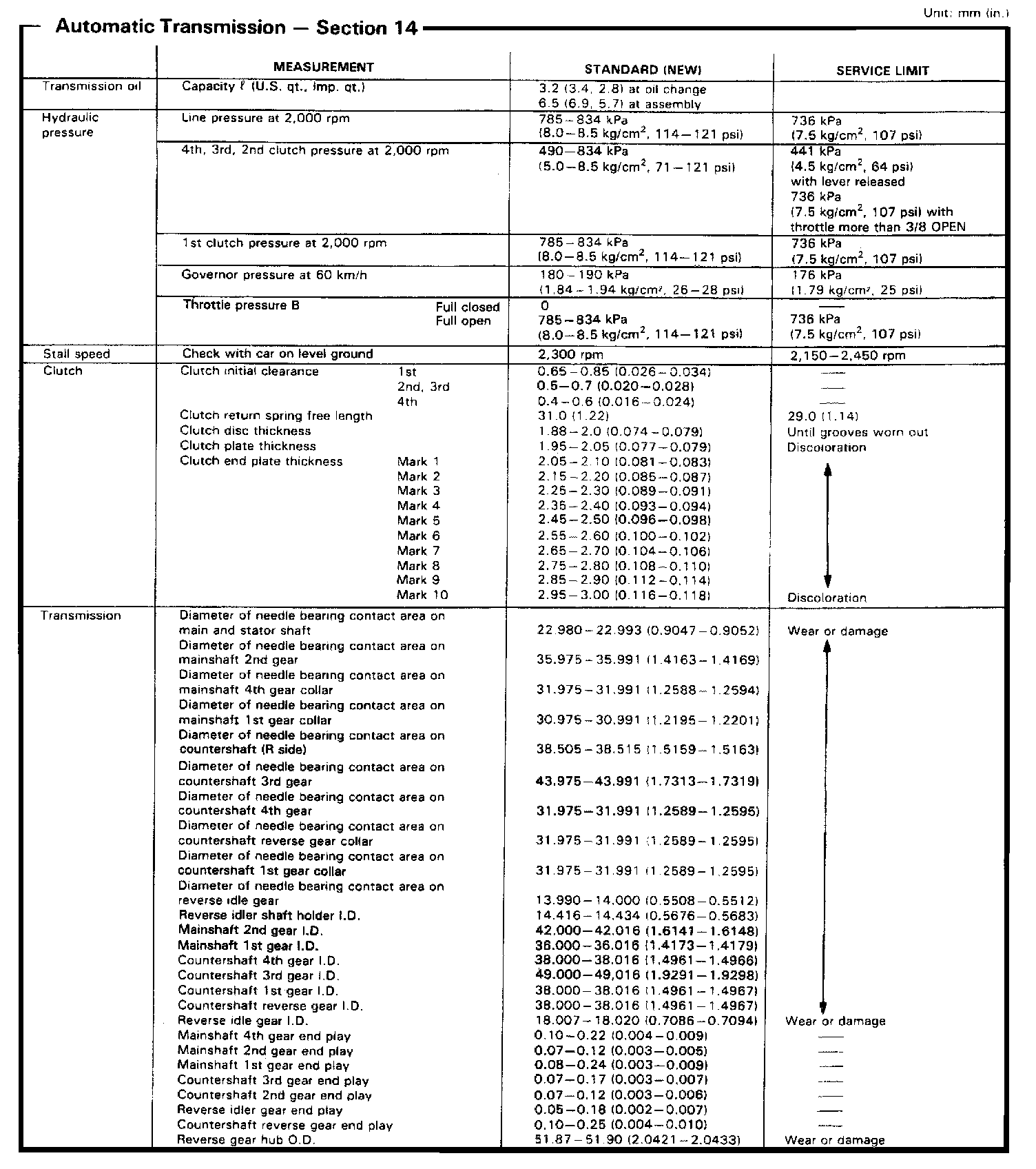 L5 4-spd A/T, Line Pressure, Clutch Clearance & Shaft Diameters: