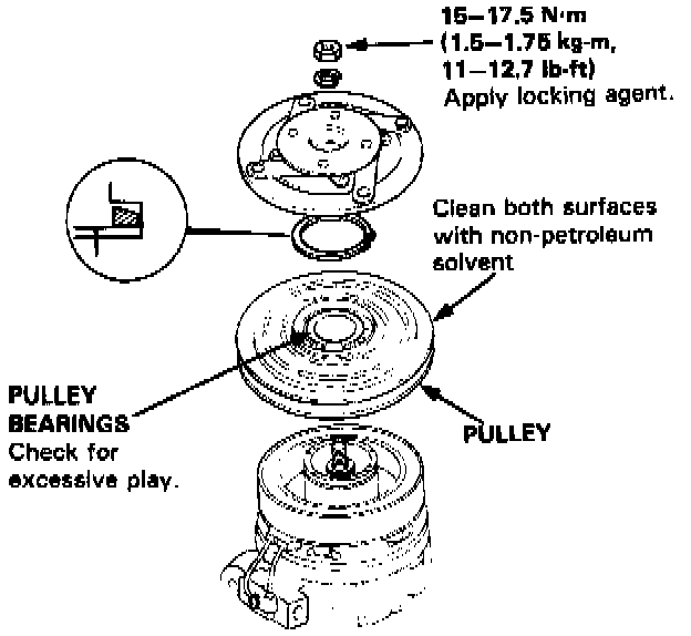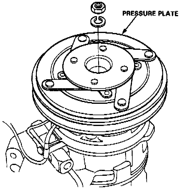 Compressor Clutch Overhaul1. Remove the nut and spring washer while holding the pressure plate.