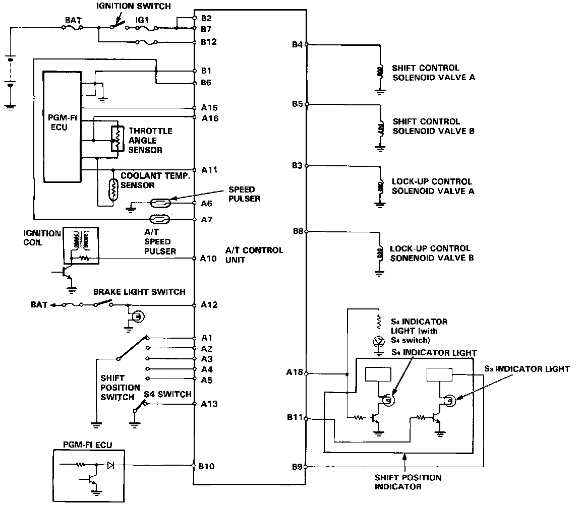 - From various input signals, the A/T control unit controls the shift control solenoid valves A and B and the lock-up control solenoid valves A and B.