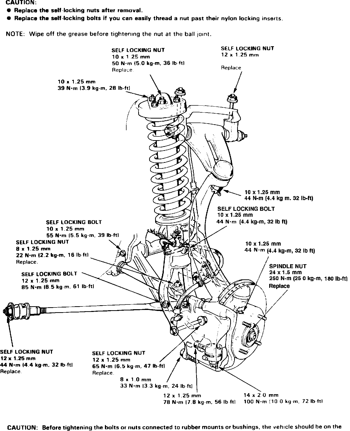 Fig. 2 Exploded view of rear suspension components. Legend: