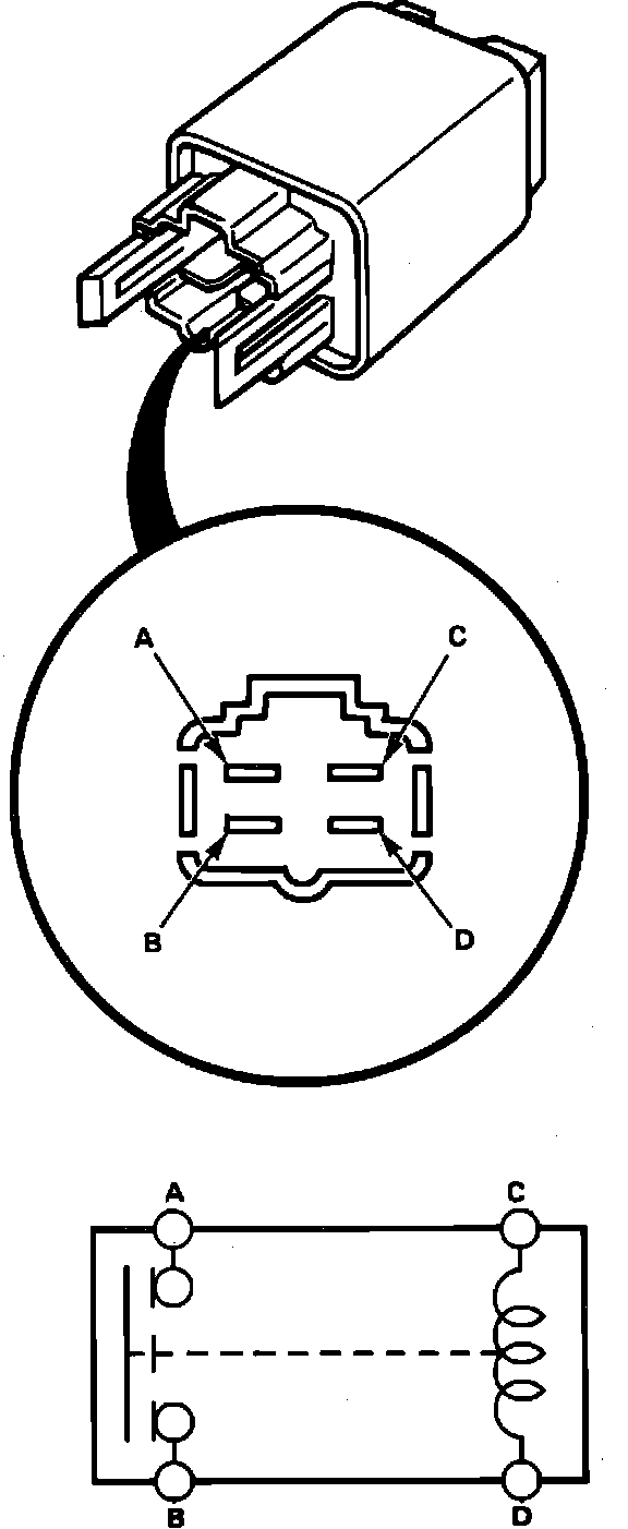 2. Check for continuity between terminals ``A'' and ``B'' when battery voltage is connected to terminals ``C'' and ``D,'' Fig. 14, continuity should be indicated.
