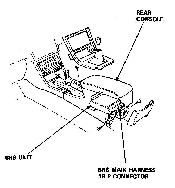 3. Remove the rear console, then disconnect the SRS main harness 18-P connector from the SRS unit.