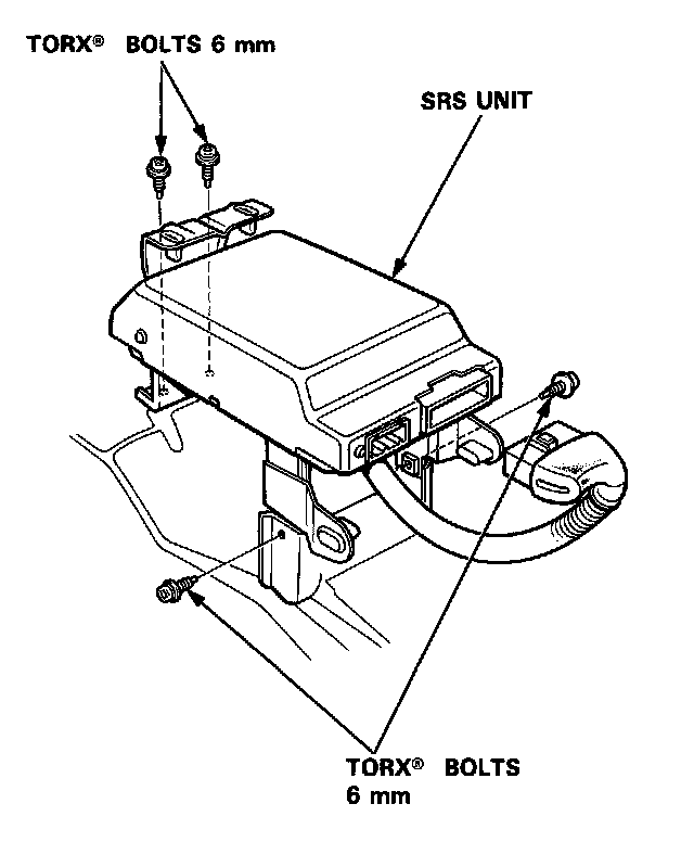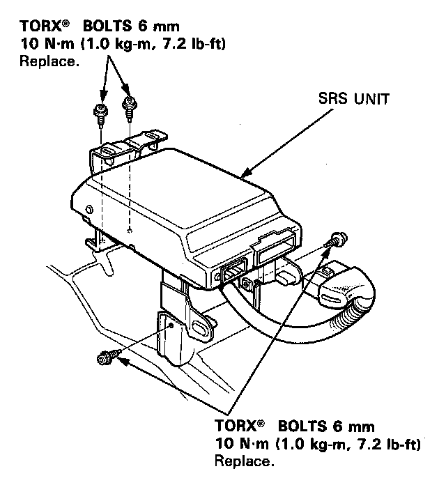 4. Remove the SRS unit 4 mounting bolts, then remove the SRS unit.