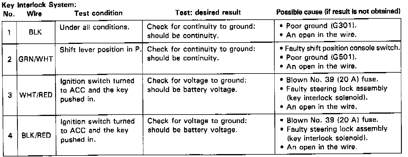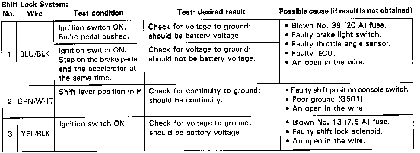 NOTE: If the shift lock solenoid clicks when the ignition switch is ON and the brake pedal is pushed (the shift lever is in the P position), the shift lock system is electronically normal.