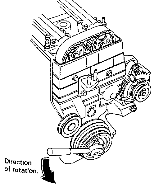 5. Rotate the crankshaft about 4 or 6 turns counter-clockwise so that the belt positions on the pulleys.