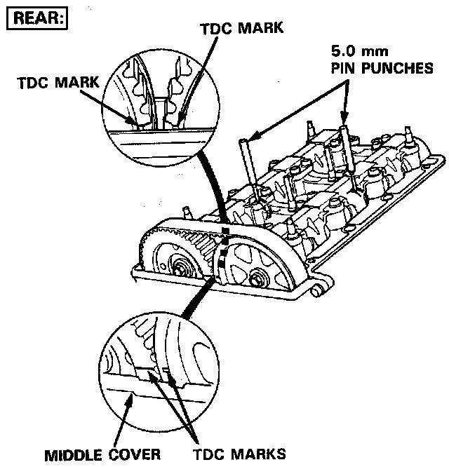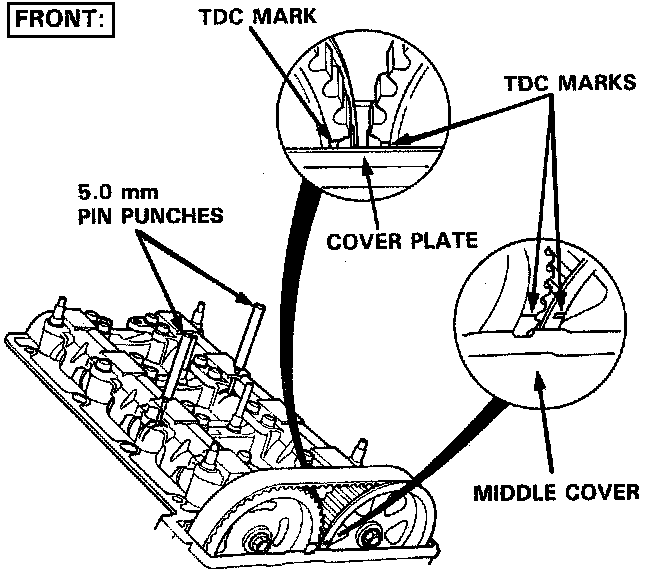 - Remove the pin punches after the timing belt has been reinstalled.