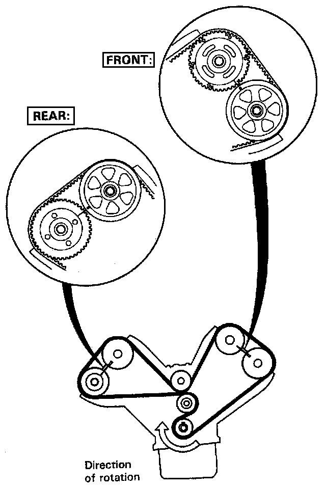 8. If the camshaft pulleys are not positioned at TDC, remove the timing belt and adjust the positioning of the pulleys, then reinstall the timing belt.