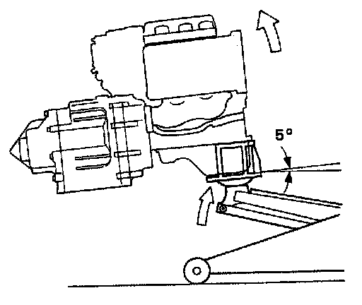 19. Install a brace under the engine, then tilt the engine approximately 5° using a jack.