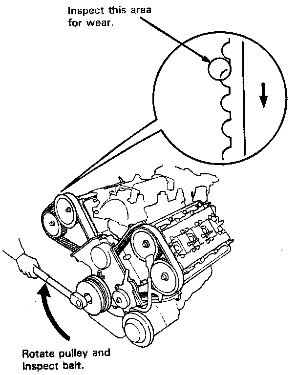 4. Inspect the timing belt for cracks and coolant or oil soaking.