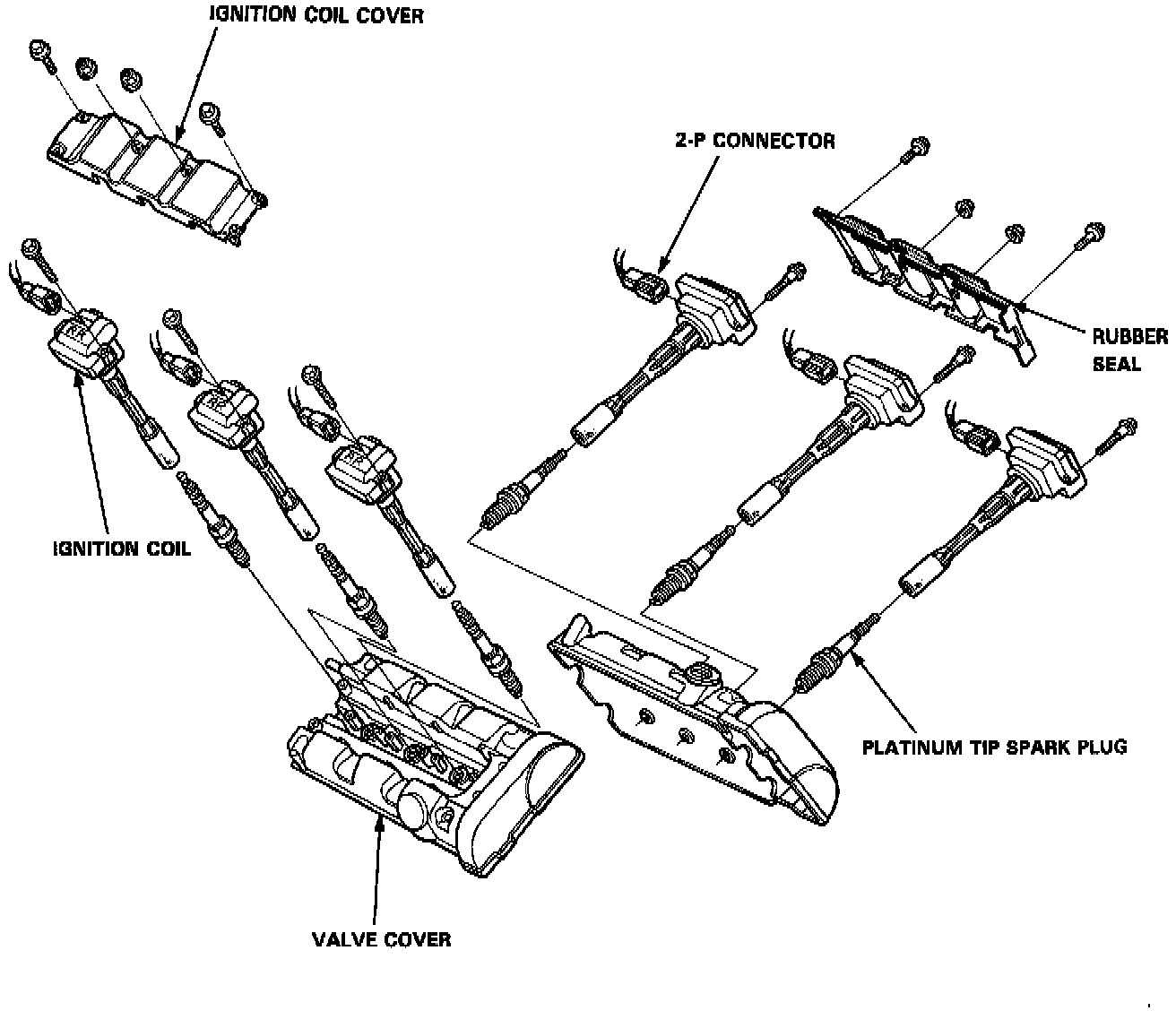 CAUTION: Ignition coils and spark plugs can become very hot in use, do not touch them until the engine has cooled down.1. Remove the ignition coil covers.