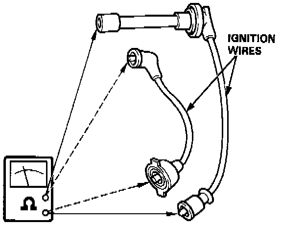 3. If resistance exceeds 25 k ohms, replace the ignition wire.
