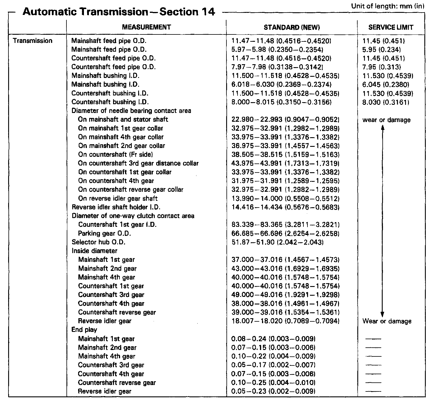 MPWA 4-spd A/T, Mainshaft & Countershaft Endplay: