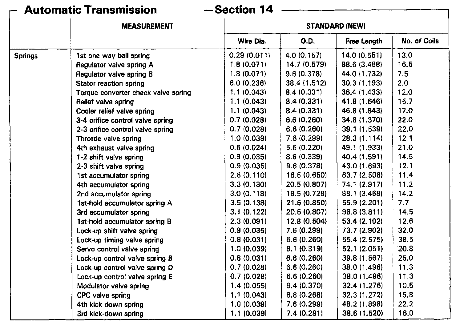 MPRA 4-spd A/T, Transmission Spring Measurements: