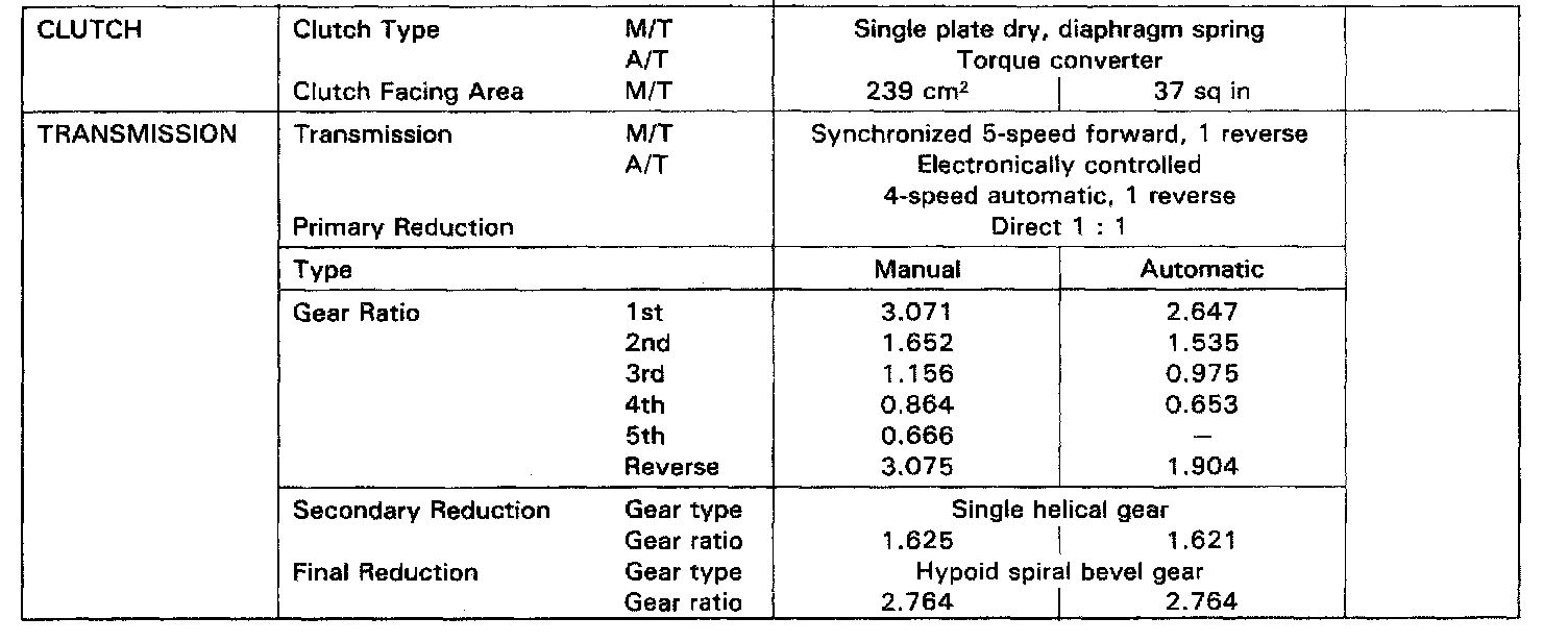 Manual/Automatic Transmission Gear Ratios: